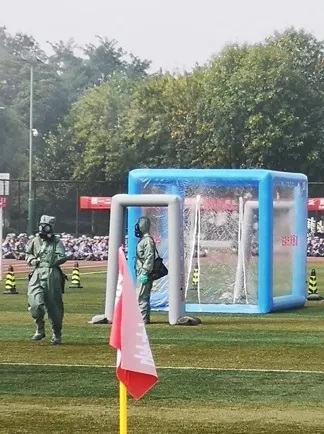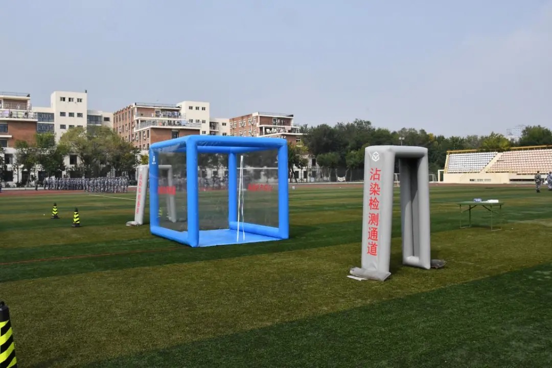 核生化防護技能訓練系統(tǒng)由多功能野戰(zhàn)帳篷、門式檢測儀、洗消通道、 病毒擴散通道、 防護防疫器材和環(huán)境模擬器材等組成。系統(tǒng)既能滿足學員在線學習、考核;又能滿足學員開展防護、防疫器材穿戴和洗消器材使用等單科目實操訓練;還可構建宏大的模擬沾染環(huán)境, 實現(xiàn)帶戰(zhàn)術背景的核生化防護技能綜合訓練。