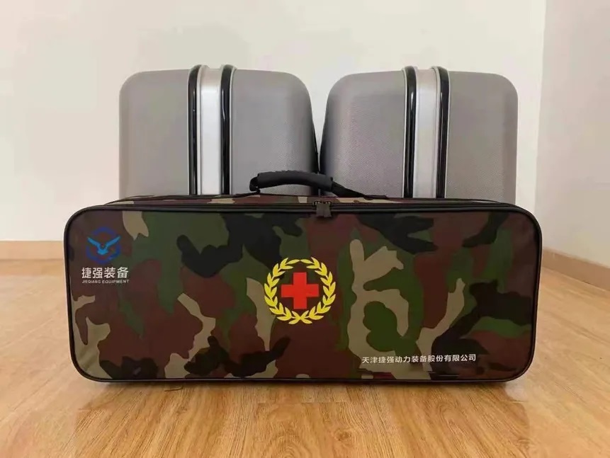 戰(zhàn)場醫(yī)療救護技能訓練系統(tǒng)由智能心肺復蘇器、氣管通氣裝置、止血繃帶、 急救包、夾板和擔架等組成。系統(tǒng)既能滿足學員在線教學、考核;又能針對窒息、 動脈出血、骨折等常見戰(zhàn)傷,實現(xiàn)心肺復蘇、通氣、止血、包扎、固定,以及重傷員搬運等戰(zhàn)場急救和自救互救技能訓練。