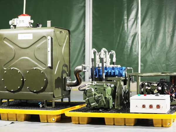 DF液壓動(dòng)力系統(tǒng)為特種車輛的核心部件,采用閥控式負(fù)荷傳感系統(tǒng),由車輛底盤變速箱取力,經(jīng)液壓傳動(dòng)進(jìn)行能量的轉(zhuǎn)化和分配后,精準(zhǔn)控制驅(qū)動(dòng)車載發(fā)電機(jī)、方艙裝卸機(jī)構(gòu)等按既定工況工作。